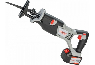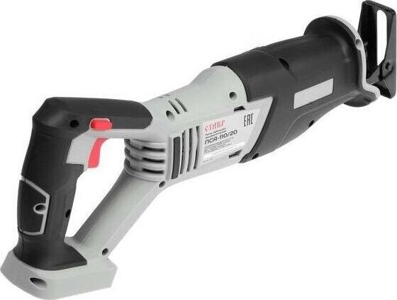 Ставр ПСА-110/20 Пила сабельная аккумуляторная Тип двигателя: щёточный Напряжение питания: 20 В Частота хода: 0-3000 ход/мин Ход пильного полотна: 20 мм Патрон: быстрозажимной Максимальная глубина пропила: дерево - 110 мм мягкие металлы - 50 мм сталь - 10 мм Масса: 1,9 кг