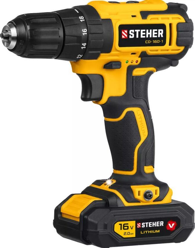 STEHER CD-160-1 16В, 1 АКБ (2Ач), в кейсе, дрель-шуруповерт