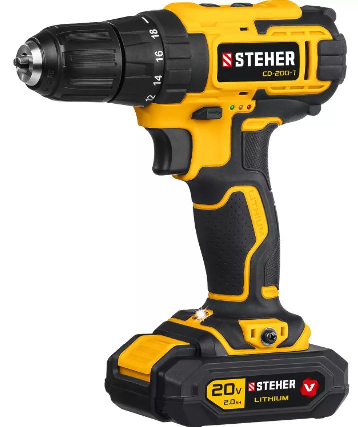 STEHER CD-200-1 20В, 1 АКБ (2Ач), в кейсе, дрель-шуруповерт