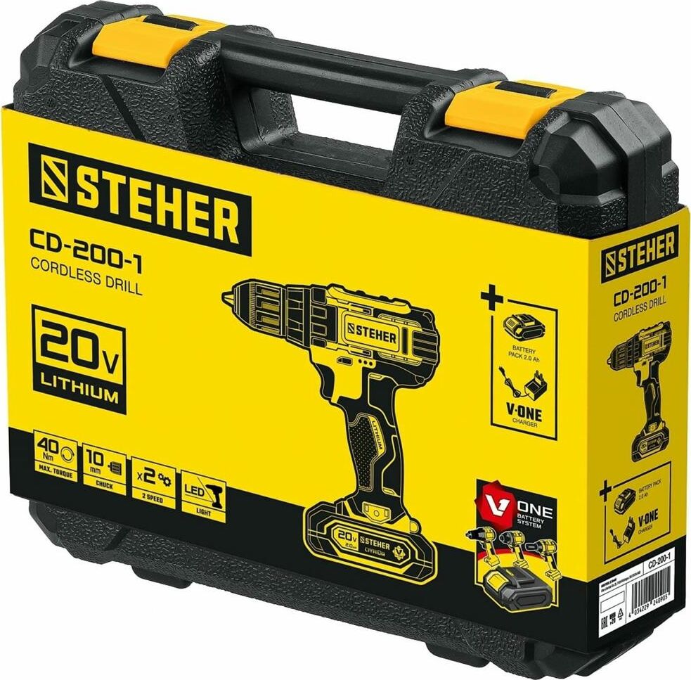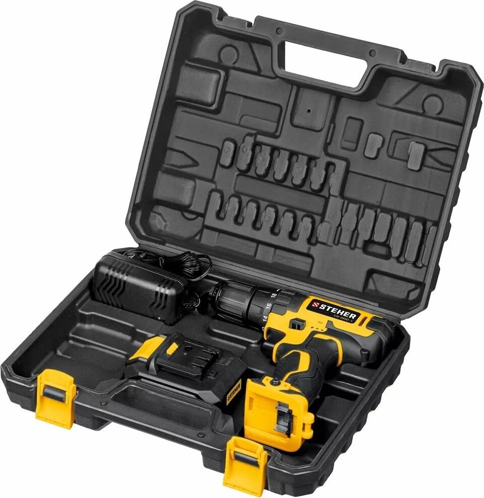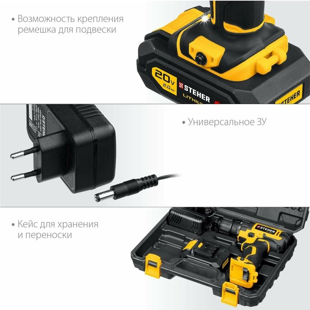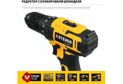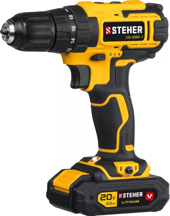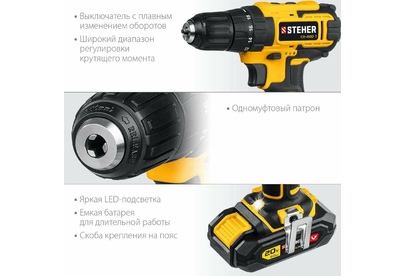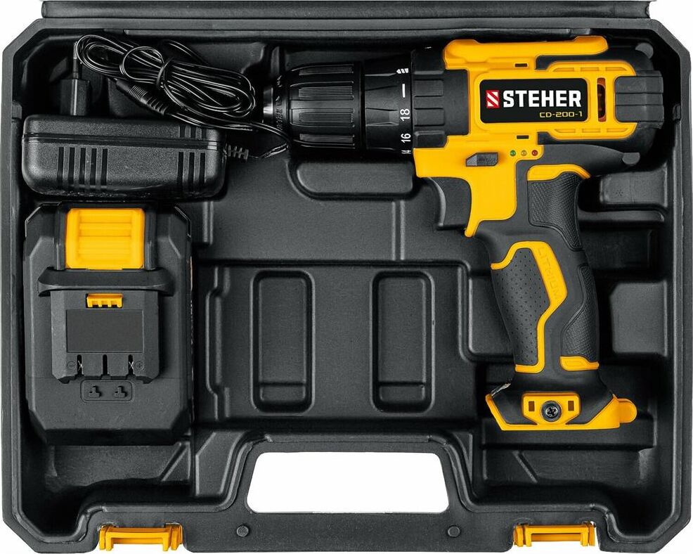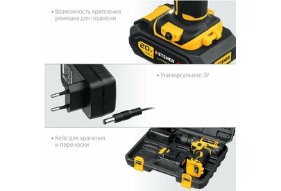 STEHER CD-200-1 20В, 1 АКБ (2Ач), в кейсе, дрель-шуруповерт