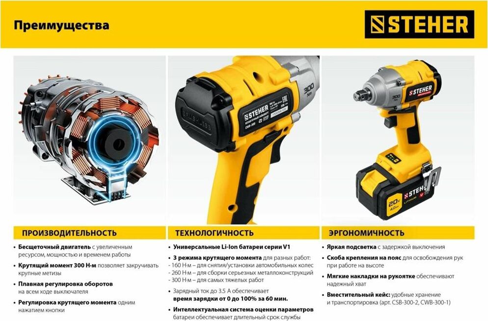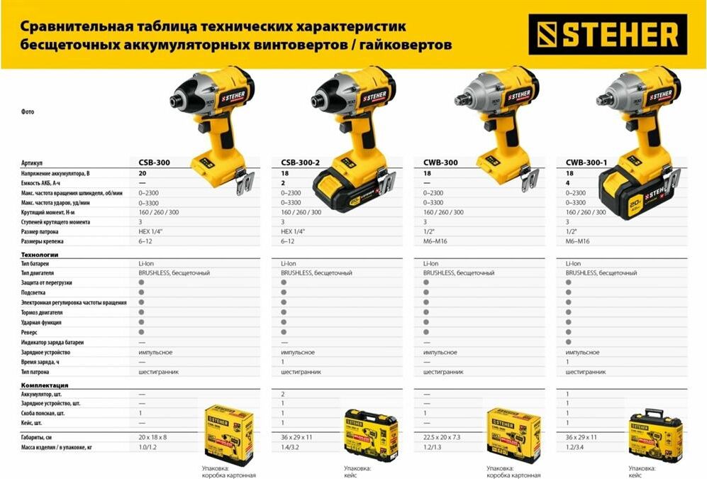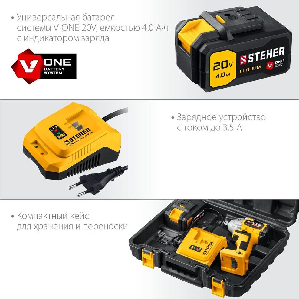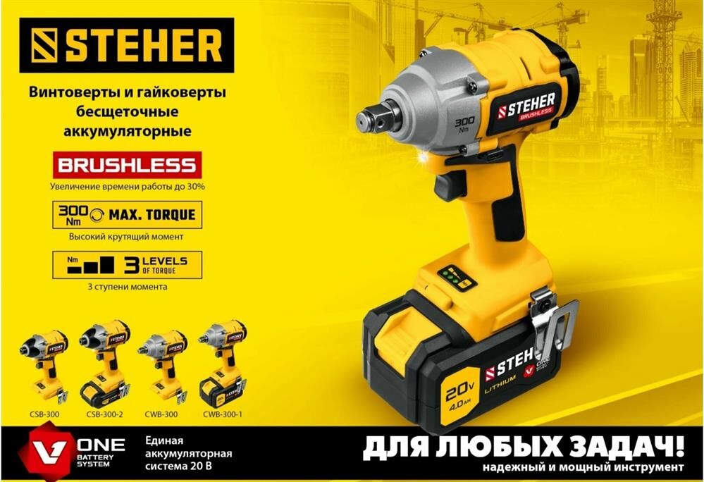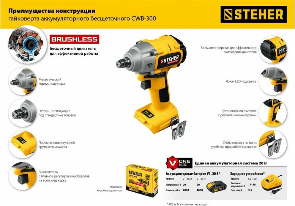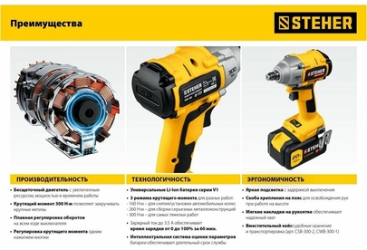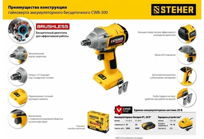 STEHER CWB-300 20В бесщёточный гайковерт, без АКБ, в коробке