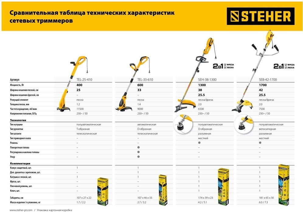 STEHER TEL-25-410 400 Вт триммер сетевой, ш/с 25 см