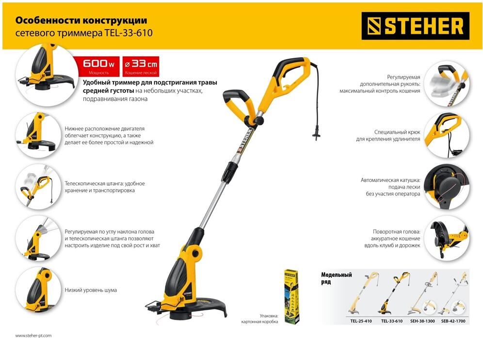 STEHER TEL-33-610 600 Вт триммер сетевой, ш/с 33 см