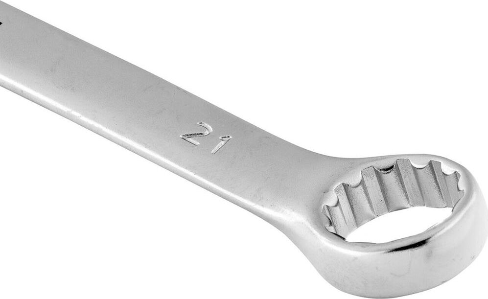 Комбинированный ключ Stels 15225 из стали CrV, 21 мм, покрытый матовым хромом, используется для закручивания и откручивания гаечных и болтовых соединений. Накидная головка имеет 12-гранную внутреннюю поверхность, что облегчает работу с крепежом и уменьшает опасность его повреждения. Ключ применяется в слесарных мастерских и автосервисах, а также будет полезен для решения бытовых задач.ПреимуществаВысокий показатель прочности — ключ изготовлен из стали хромованадиевой группы, рабочая часть закалена до твердости 45 HRC.Матовое хромоникелевое покрытие — инструмент защищен от образования коррозии.Комфорт при монтаже в труднодоступных местах — кольцевой зев наклонен под углом в 15 градусов к плоскости ключа.