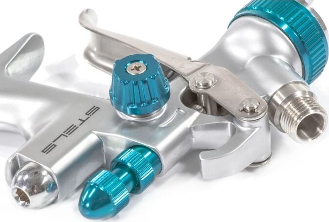 Краскораспылитель STELS системы LVMP (Low Volume Middle Pressure – «низкий объем, среднее давление» , с верхним бачком предназначен для нанесения декоративных, покрытий на различные поверхности. Корпус краскораспылителя имеет защитное покрытие из полированного хрома. Объем бачка 600 мл. Расход материала 165-220 мл/мин. Максимальное давление 2,5 бар. Диаметр пневморазъема 1/4 . В комплекте поставляется дополнительный дюзовый набор D 1,1 мм, универсальный ключ и ершик для чистки.