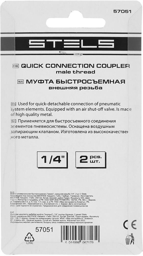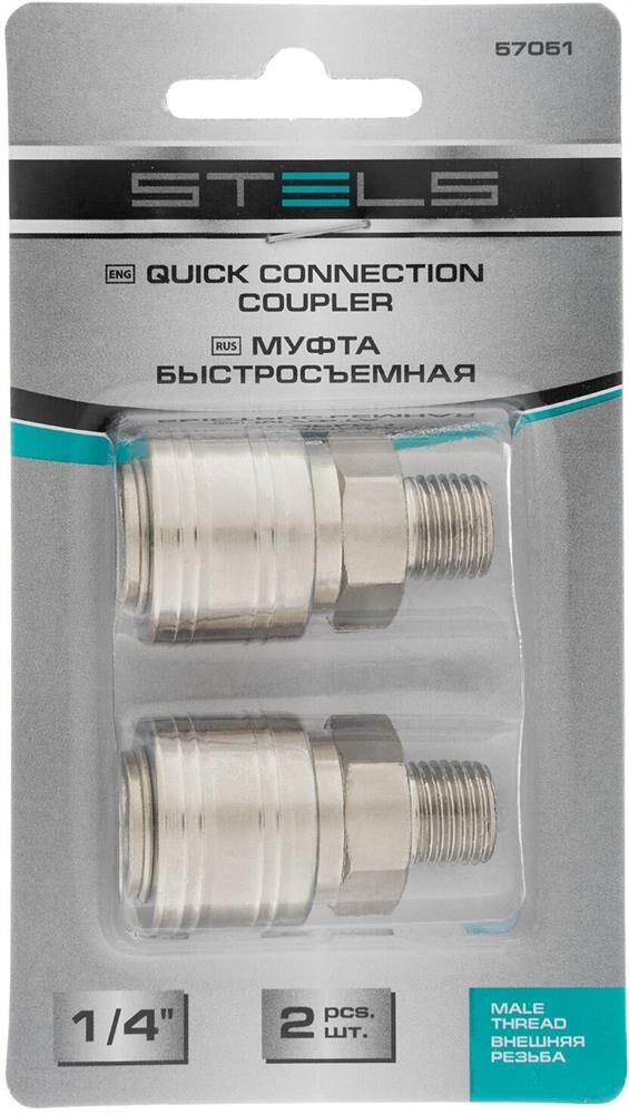STELS Муфта универсальная быстросъемная ("мама") 1/4, внешняя резьба, 2 шт, 57051