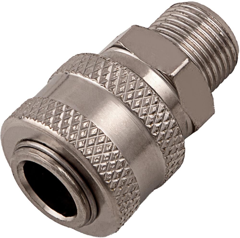 Универсальная быстросъемная муфта «мама» с внешней резьбой 3/8 " используется в качестве соединяющего элемента при сборке пневматической системы. Подключение инструмента к компрессору через воздушный шланг занимает несколько секунд, с ним справится даже новичок.Преимущества:Стальная конструкция гарантирует безопасную эксплуатацию, поэтому прослужит долго.Защита от протечек воздуха позволяет добиться стабильно высокой производительности пневмоинструмента.В комплект поставки включены 2 муфты.