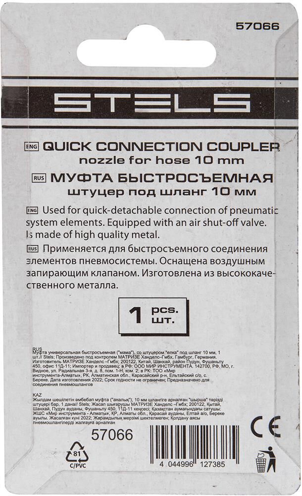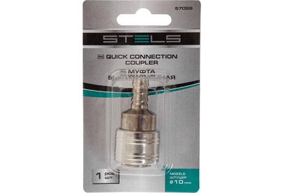 STELS Муфта универсальная быстросъемная ("мама") со штуцером "елка" под шланг 10 мм, 1 шт, 57066