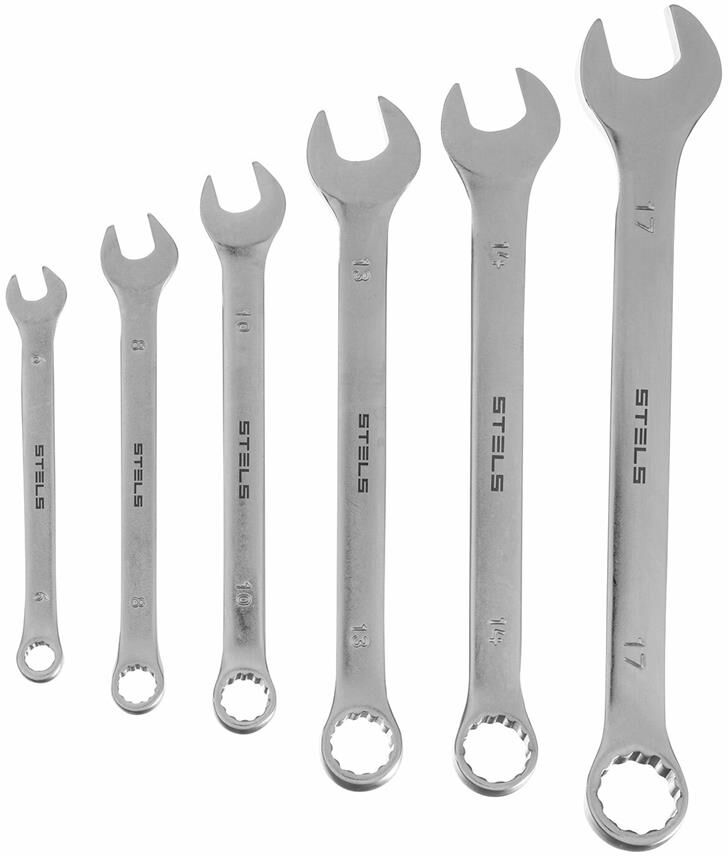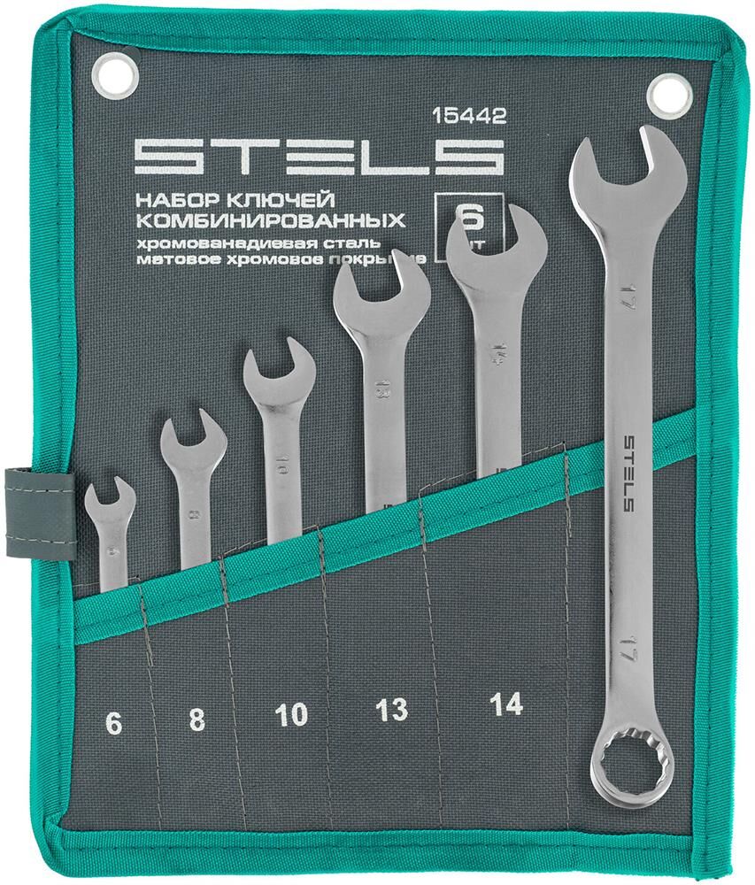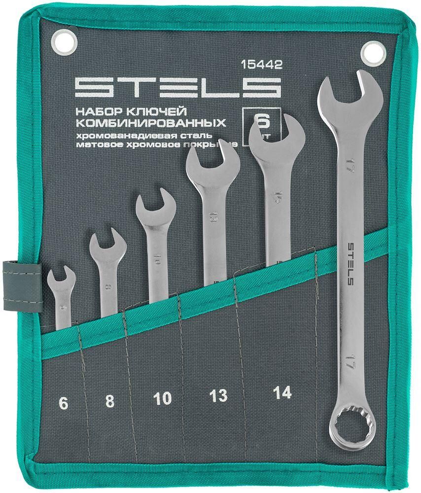 STELS Набор ключей комбинированных 6-17 мм, 6 шт., CrV, матовый хром 15442