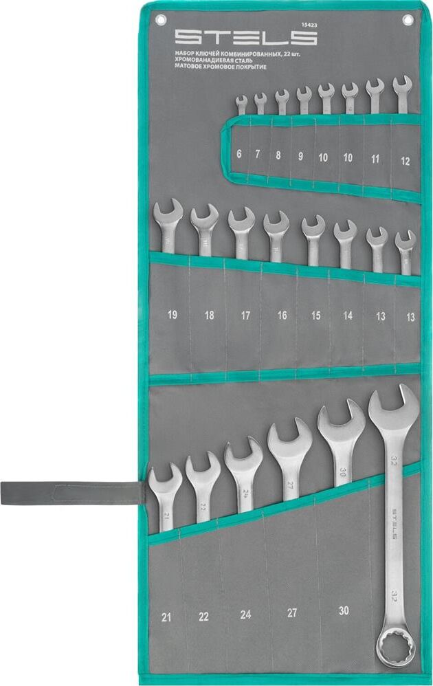 STELS Набор ключей комбинированных 6-32 мм, 22 шт, CrV, матовый хром 15423