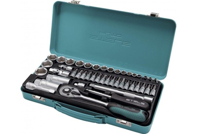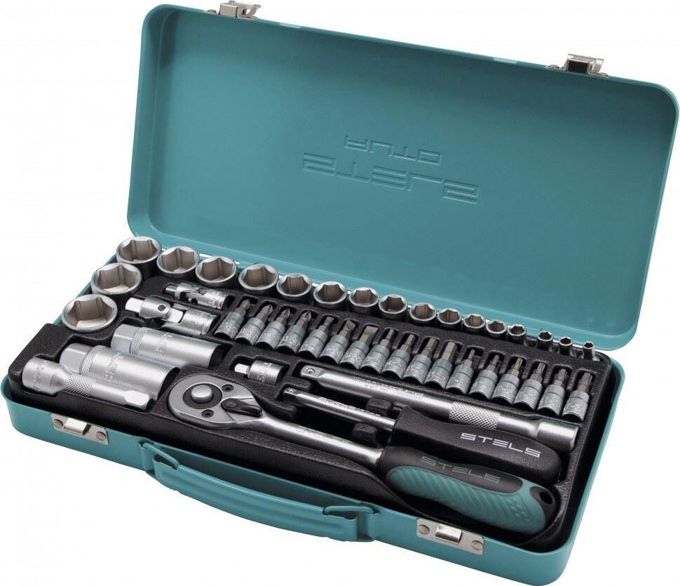 Набор торцевых головок с трещоткой Stels 13575, с присоединительным размером 1/4 и 3/8 дюйма, включает в себя 44 предмета. Он станет незаменимым помощником для специалистов СТО и автолюбителей, пригодится в гараже, поездке, а также дома и на даче.ПреимуществаУдобная работа в труднодоступных местах — трещотка с 72 зубьями позволяет вращать крепеж плавно и мягко.Прочность — инструменты выполнены из термически обработанной инструментальной стали.Встроенный механизм сброса — снятие и установка насадки занимает несколько секунд.Металлические фиксаторы — насадки крепко держатся и не слетают во время работы.Комфортная работа — эргономичная двухкомпонентная рукоятка не выскальзывает из ладони.Удобное хранение и транспортировка — набор поставляется в надежном металлическом кейсе с ложементом.Высокое качество — инструменты изготовлены под строгим технологическим контролем.