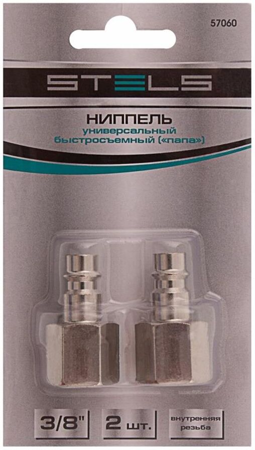 STELS Ниппель универсальный быстросъемный ("папа") 3/8, внутренняя резьба, 2 шт, 57060