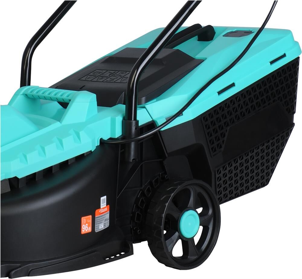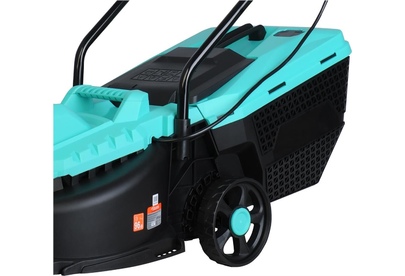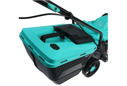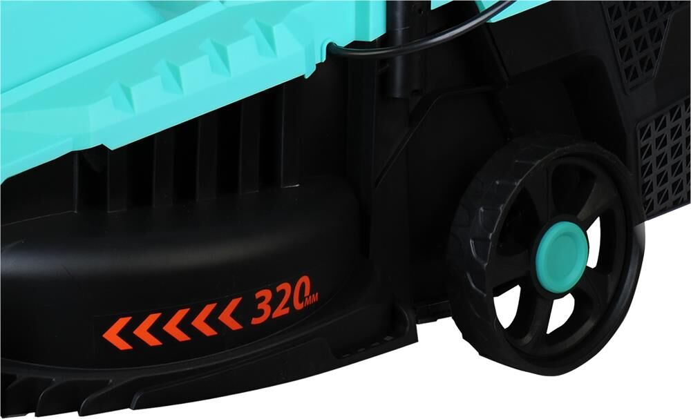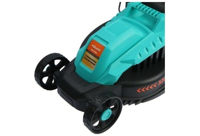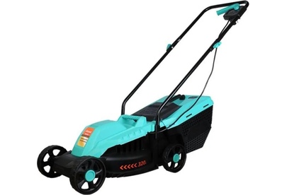 Тип двигателя: электрический. Мощность двигателя: 1400. Режущая система: нож. Ширина скашивания: 32. Система регулировки высоты скашивания: 3 уровня. Тип выброса травы: задний выброс. Тип травосборника: жесткий. Количество колес: четырехколесная. Вес товара: 8.2. Комплект поставки: Газонокосилка, травосборник, рукоятка с набором крепежа, фиксаторы силового кабеля, инструкция по эксплуатации.. Тип передвижения: несамоходное. Габариты упаковки (ед) ДхШхВ: 0.575x0.385x0.29. Вес упаковки (ед): 9. Гарантия: 14 мес.. Высота скашивания: 30 - 70 мм. Размеры: 110 х 36.5 х 94.5 см. Особенности устройства: защита от перегрузок, регулировка высоты скашивания. Двигатель: электрический, 1400 Вт. Выброс травы: задний выброс. Вес: 8.2 кг. Режущая система: нож. Ширина скашивания: 32 см