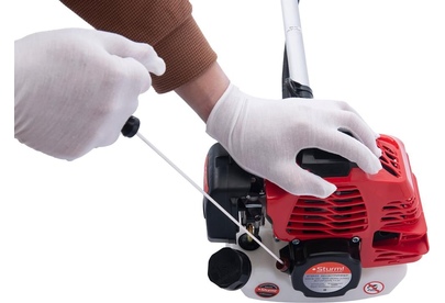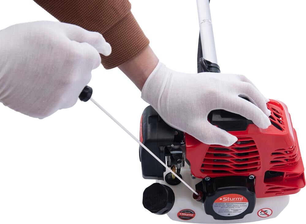 Праймер Да Тип двигателя 2-х тактный, одноцилиндровый, с воздушным охлаждением Свеча зажигания L7T, M14*1,25, шестигранник 19 мм Объем двигателя (куб.см) 33 Обороты на холостом ходу (об/мин) 3 200,000 Мощность двигателя (Вт) 1000Вт/1,36л.с. Вид топлива Смесь бензина АИ-92 и специального масла для двухтактных двигателей