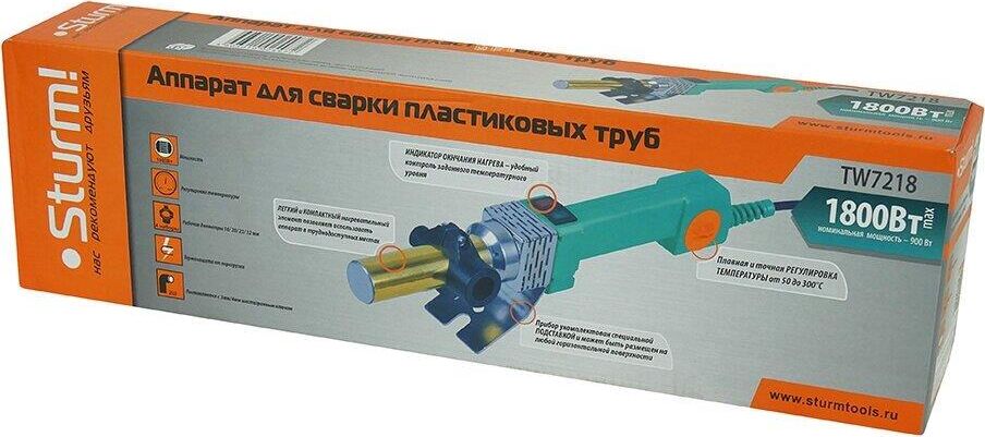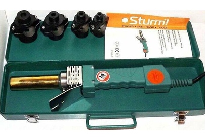 Аппарат для сварки пласт. труб Sturm, мощность, 1800 Вт, 4 насадки, кейс металл. Масса нетто (в собранном, рабочем состоянии, но без аксессуаров) (кг) 1,1, Вес 2.5 кг.
