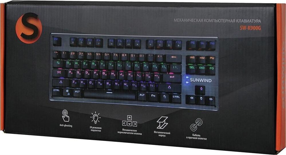 SUNWIND Клавиатура SW-K900G механическая черный USB Multimedia for gamer LED