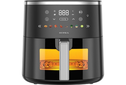 Аэрогриль, электронное управление, цветной светодиодный дисплей, мощность: 2000 Вт, внутренний объем: 7 Л, антипригарное покрытие , смотровое окно , внутренняя подсветка, таймер, регулируемая температура: 60-220 градусов, ручная настройка режимов приготовления, 8 предустановленных программ приготовления