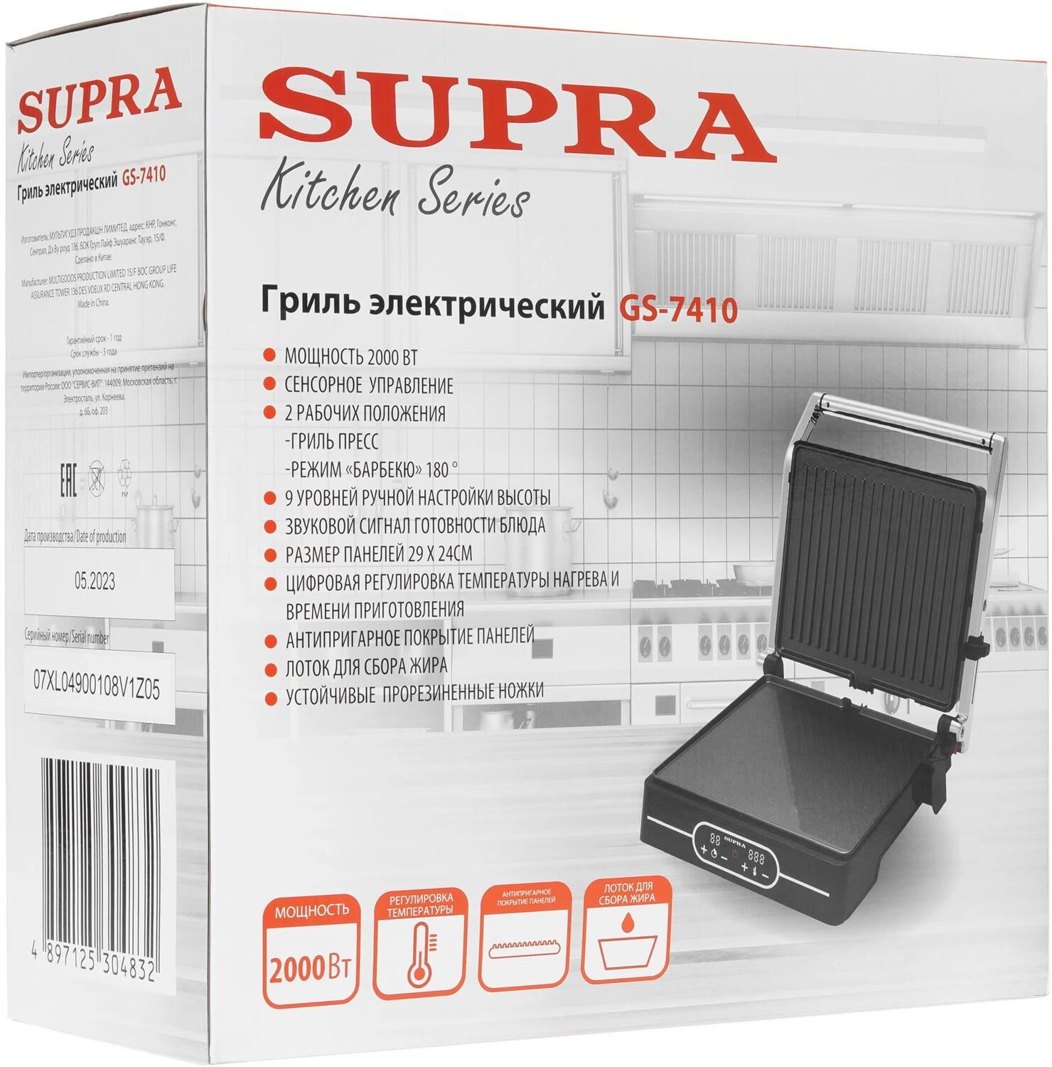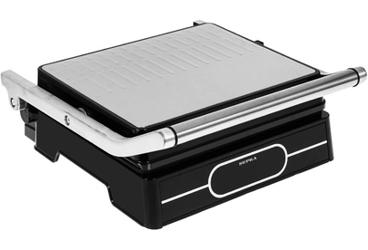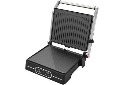 мощностью 2000 Вт, сенсорное управление, гриль-пресс, режим "барбекю" (180 градусов), 9 уровней мощности, съемные панели, размер панелей 29х24 см, контейнер для сбора жира