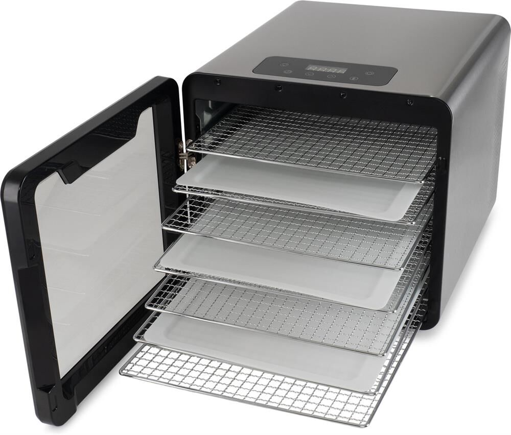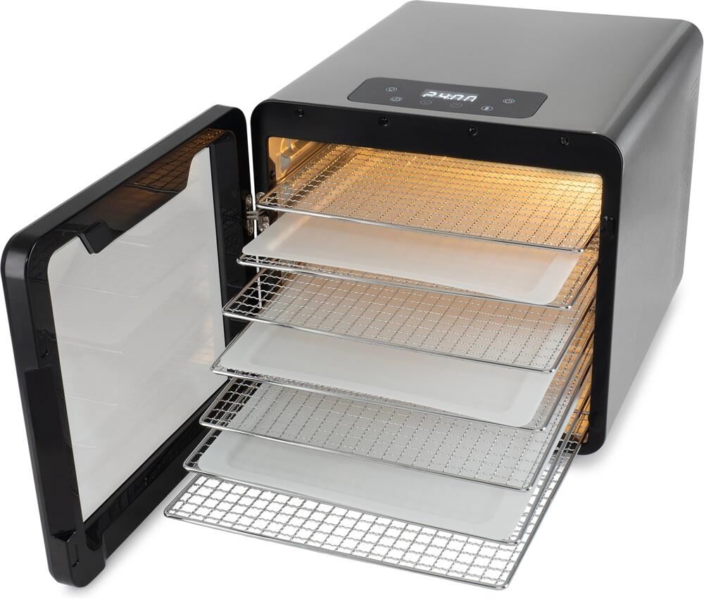 Мощность 600 Вт Регулировка температуры, мин 30 °С Регулировка температуры, макс 75 °С Возможность сушки фруктов ДА Возможность сушки овощей ДА Возможность сушки грибов ДА Возможность сушки трав ДА Количество поддонов 14 шт Цвет серебристый Особенности Лампа подсветки внутри камеры для контроля сушки , широко открывающаяся дверца для удобства загрузки и выгрузки