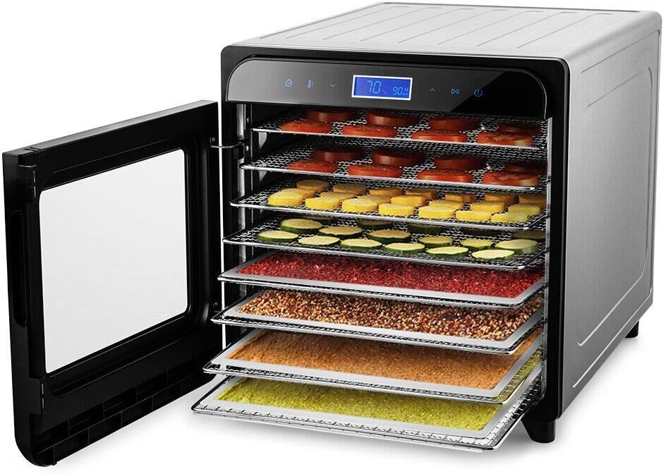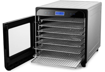 Мощность 700 Вт Возможность сушки грибов, овощей, трав, фруктов Диапазон температур от 35 до 75 °С Количество уровней 8 Количество поддонов 24 шт Ширина поддона 33 см Глубина поддона 35 см Комплектация Комплектация 8 металлических сетчатых поддонов для сушки фруктов, овощей, мяса 8 пластиковых сетчатых поддонов для сушки небольших продуктов (травы и ягоды); 8 пластиковых сплошных поддонов для сушки водянистых продуктов и пастилы Цвет нержавеющая сталь/черный Габариты упаковки (ед) ДхШхВ 0.52x0.4x0.43 м Вес упаковки (ед) 13.4 кг