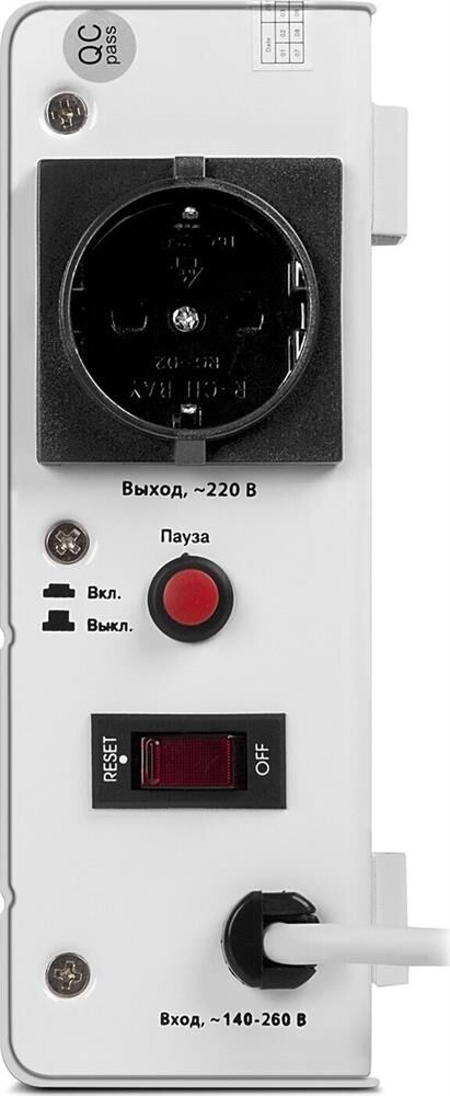 Релейный стабилизатор напряжения, входное напряжение 140-260 В, выходное напряжение 198-242 В, точность стабилизации 10%, активная мощность -800 Вт , полная мощность - 1 кВ·А, тип входного напряжения - однофазное (220 В), настенное размещение.