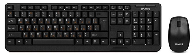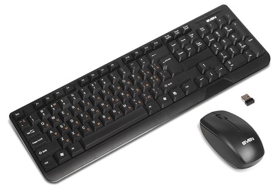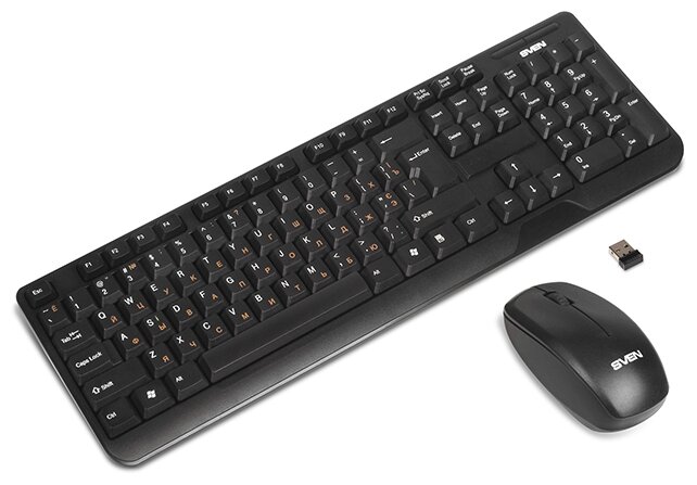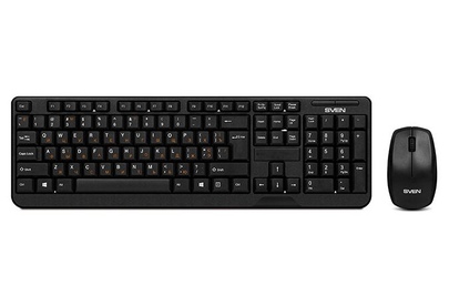 Беспроводной набор (клавиатура+мышь), количество клавиш 104, мышь оптическая, 2 + 1 (колесо прокрутки). 1000 dpi, влагоустойчивая конструкция, 2,4 ГГц USB-наноприемник, дальность действия комплекта – до 10 метров.
