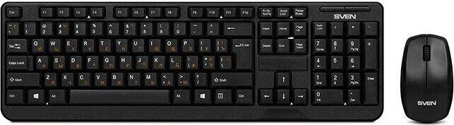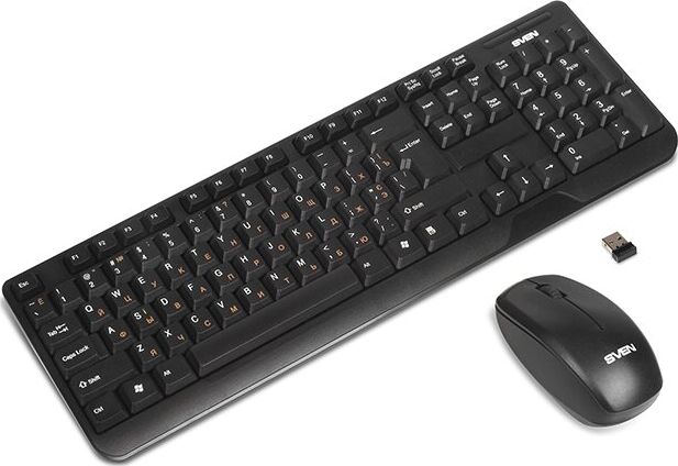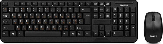 Беспроводной набор (клавиатура+мышь), количество клавиш 104, мышь оптическая, 2 + 1 (колесо прокрутки). 1000 dpi, влагоустойчивая конструкция, 2,4 ГГц USB-наноприемник, дальность действия комплекта – до 10 метров.