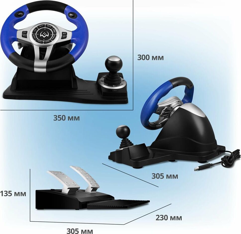 игровой руль, Поддержка Windows XP/Vista/7/8/10/PS3/X-Input, Интерфейс подключения USB, Технология связи проводная, Оси и джойстики 2 оси, 8-позиционный джойстик D-Pad, рычаг переключения передач «Tiptronic», Количество кнопок, шт. 12, Функция виброотдачи есть, Диаметр руля 10" (260 мм), Угол поворота, градусов 270