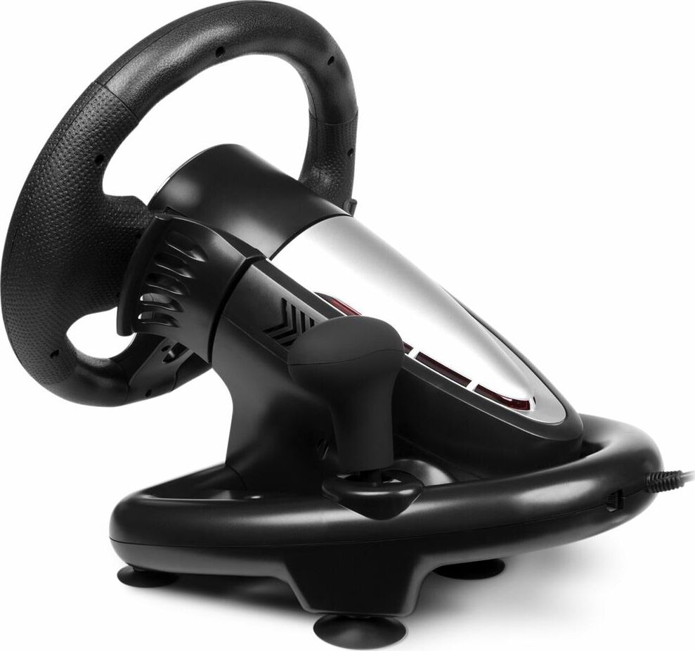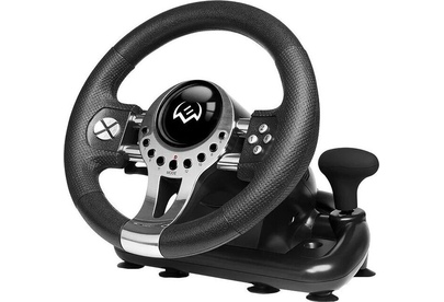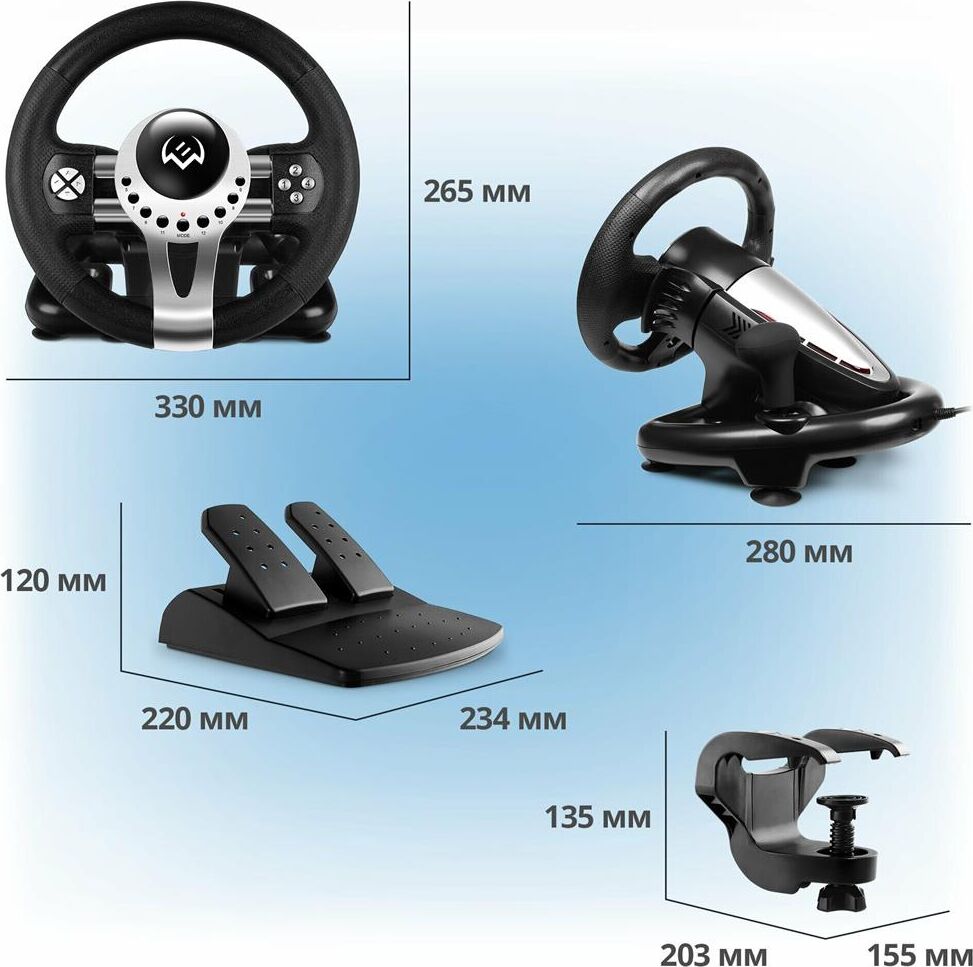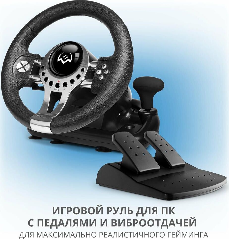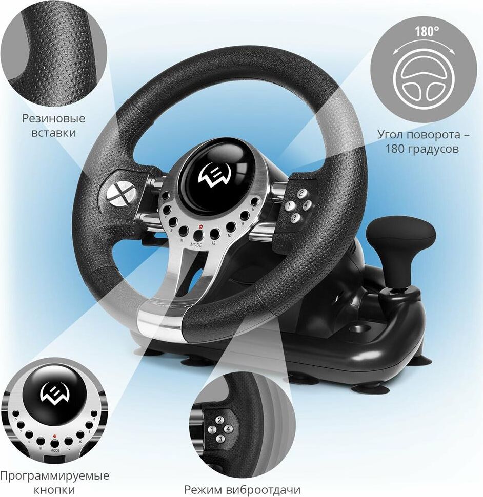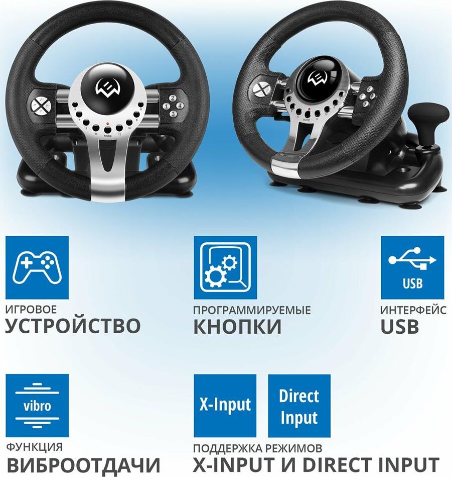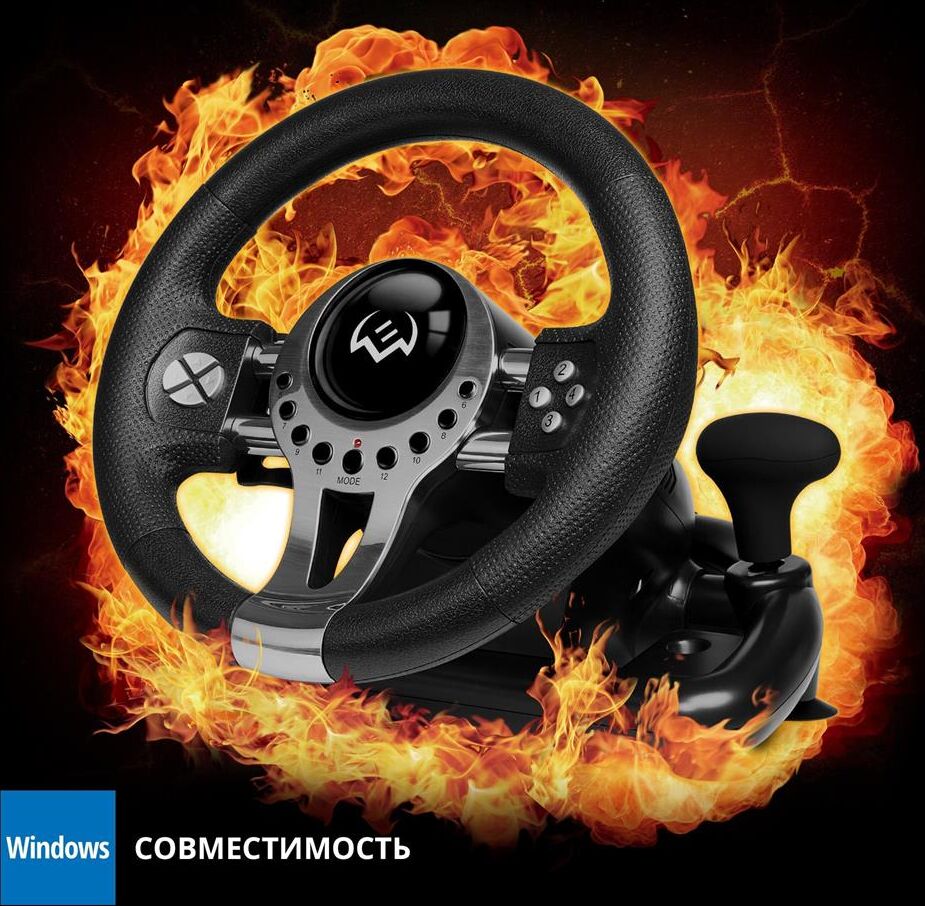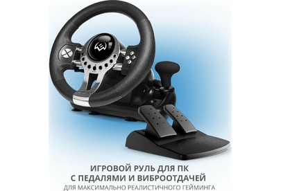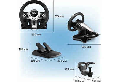игровой руль, Поддержка Windows XP/Vista/7/8/10, Интерфейс подключения USB, Технология связи проводная, режим работы цифровой и аналоговый, Оси и джойстики 2 оси, 8-позиционный джойстик, рычаг переключения передач «Tiptronic», Количество кнопок, шт. 12, Функция виброотдачи есть, Диаметр руля 10" (254 мм), Угол поворота, градусов 180