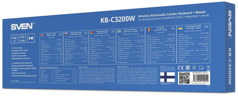 Тип мультимедийная Технология связи беспроводная Совместимость с ОС Windows Раскладка клавиатуры Рус/Укр/Eng Раскладка кириллицы Windows Количество клавиш 115 Количество клавиш быстрого доступа 11 Контакты клавиш мембранные Мышь оптическая, 3 + 1 (колесо прокрутки), 1000/1400/2000 DPI Интерфейс USB Наработка на отказ, нажатий свыше 20 000 000 (клавиатура) свыше 3 000 000 (мышь) Радиус действия, м до 10 Соответствие стандартам FCC, CE, ЕАС Размеры изделия, мм клавиатура: 444 ? 144 ? 24(35) мышь: 114 ? 66 ? 32 Вес, г клавиатура: 410 мышь: 62 Цвет чёрный