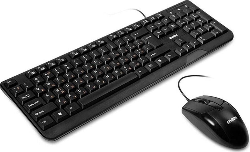 Проводной набор (клавиатура+мышь), количество клавиш 104, клавиши быстрого доступа - 12, влагоустойчивая конструкция, мышь оптическая, 2 + 1 (колесо прокрутки), 800 dpi.