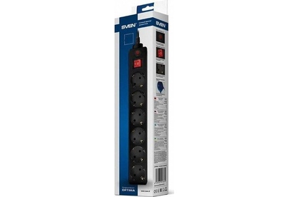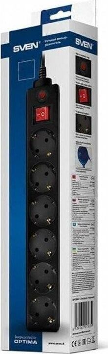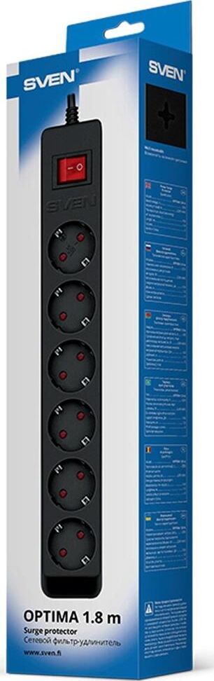 SVEN OPTIMA 1,8 м (6 розеток с защитными шторками, черный, цветная коробка)