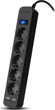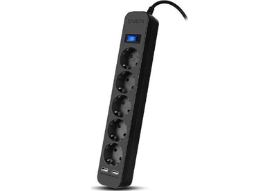 SVEN SF-05LU 1,8 м (5 евро розеток,2*USB(2,4А)) черный, цветная коробка