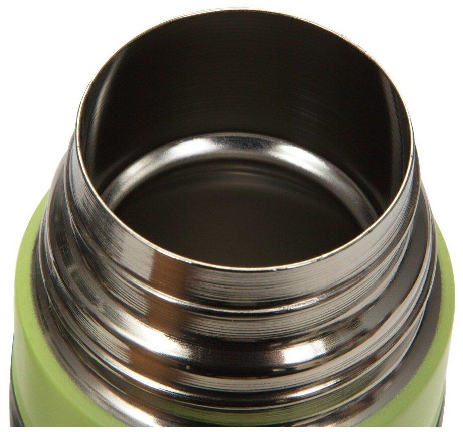 Термос стальной 0,5 л Lester/Лестер, зеленое матовое покрытие. Кнопочный переключатель, узкое горло, силиконовый протектор, чехол с ремешком (цвет — серый). • Высококачественная нержавеющая сталь 18/10, пищевой пластик • Высота (включая внешнюю крышку): 24.6 см • Диаметр термоса: 6.9 см • Диаметр горлышка термоса: 4.4 см • Лого — шелкография • Рекомендовано мыть вручную
