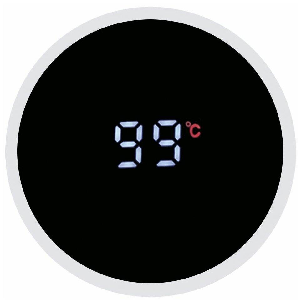 Термос Морис 0,45л • Высококачественная нержавеющая сталь 18/10, пищевой пластик • Сенсорный индикатор температуры на крышке • Съемная сетка-фильтр из нержавеющей стали • Высота (включая внешнюю крышку): 22 см, ширина 6,3 см