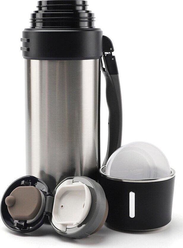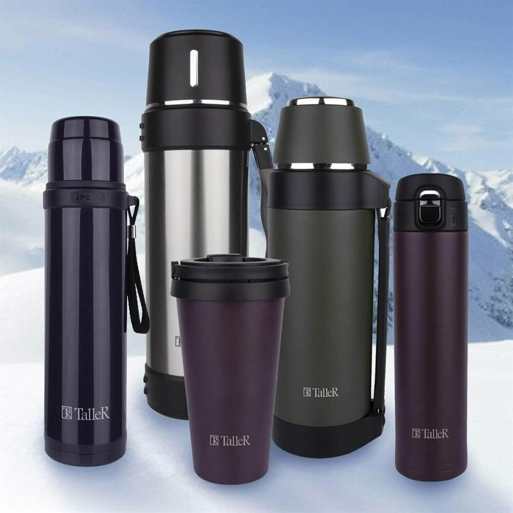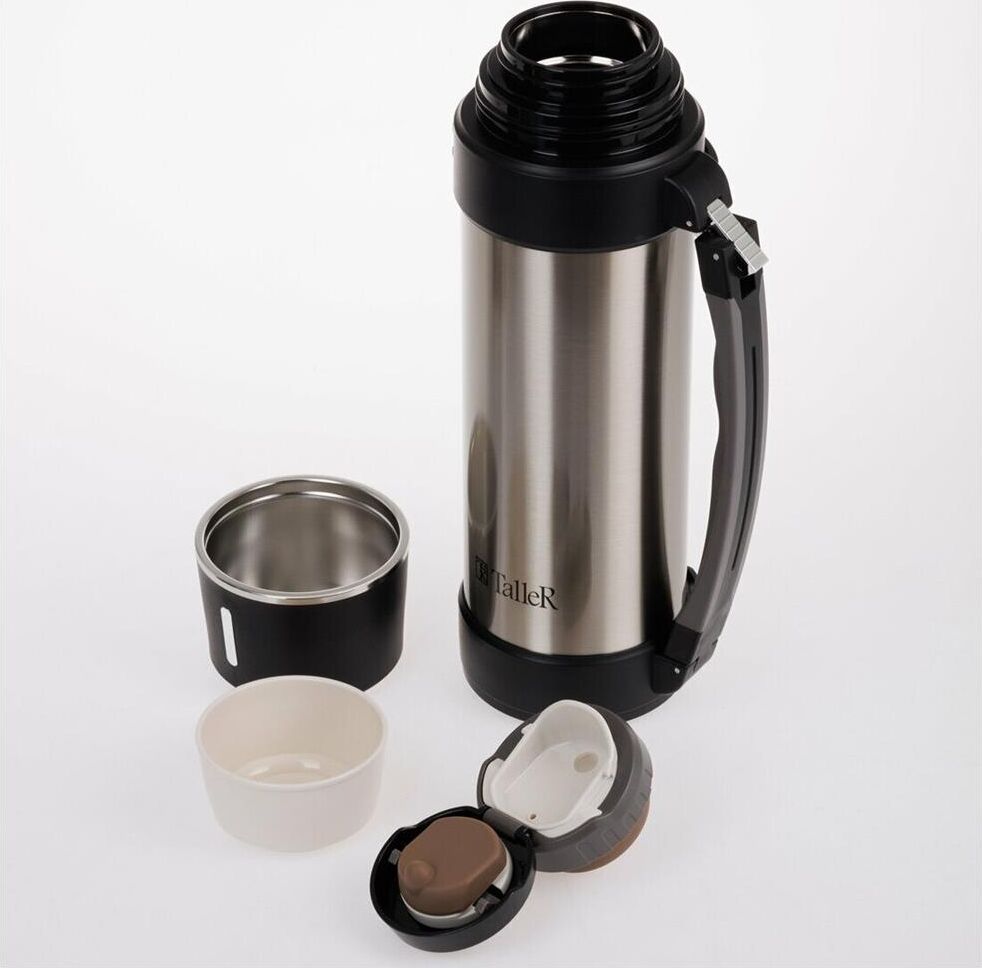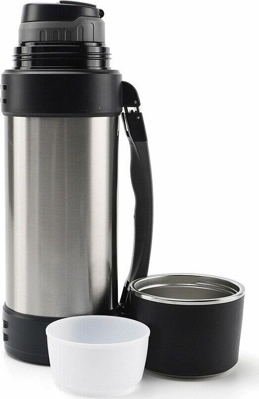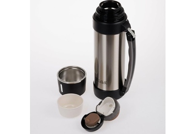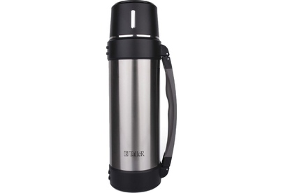 Термос стальной Колинз 1,8 л. Матовое покрытие. - Кнопка-клапан для налива, - крышка-стаканчик -удобная ручка для переноски • Высококачественная нержавеющая сталь 18/10, пищевой пластик • Высота (включая внешнюю крышку): 34,5 см • Диаметр термо