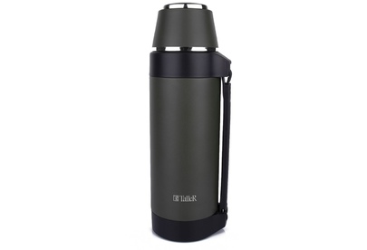 Термос стальной Лукас 1,5 л. Матовое покрытие. - Кнопка-клапан для налива, - крышка-стаканчик -удобная ручка для переноски • Высококачественная нержавеющая сталь 18/10, пищевой пластик • Высота (включая внешнюю крышку): 33,5 см • Диаметр термос