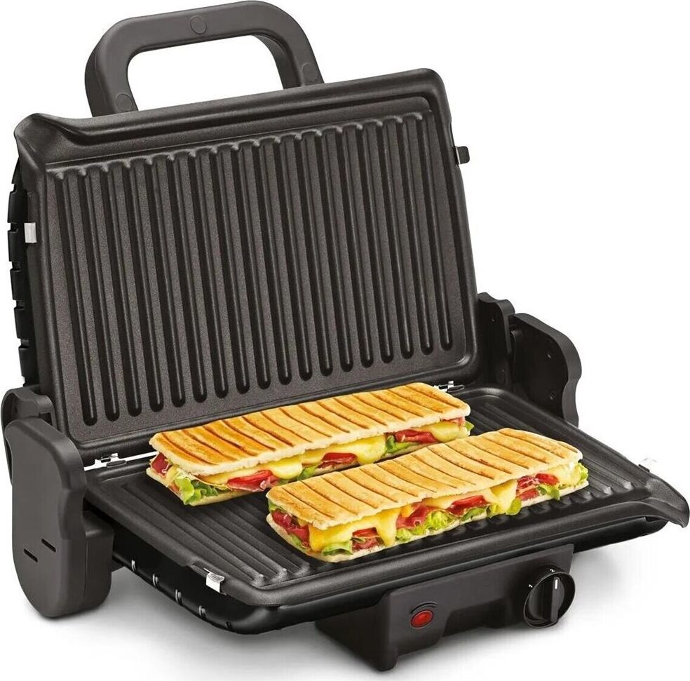 Тип Электрогриль, Вид гриля Закрытый, Вид рабочей поверхности Гриль, Материал рабочей поверхности Металл, Мощность, Вт 1600, Вертикальное хранение, Ручка для переноски, Регулировки и органы управления Термостат, Световая индикация достижения заданного нагрева, Ручки с защитой от жара, Материал корпуса Металл, Пластик.