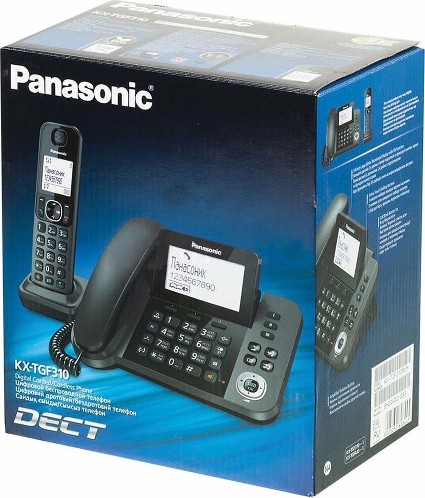 проводной и беспроводной телефон DECT, АОН и Caller ID (черный список), функция резервного питания, спикерфон на трубке и базе, телефонная книга 100 записей, разъем для гарнитуры, будильник, ночной режим, радионяня
