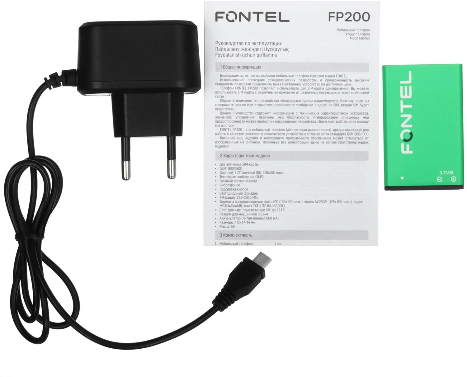 Телефон мобильный FONTEL FP200 черно-зеленый