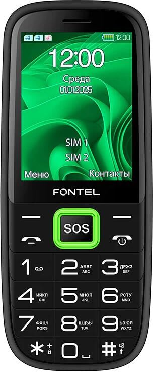 Телефон мобильный FONTEL SP280 черно-зеленый