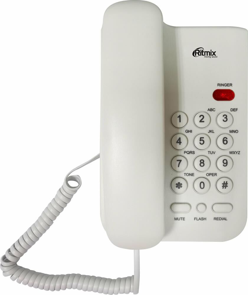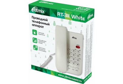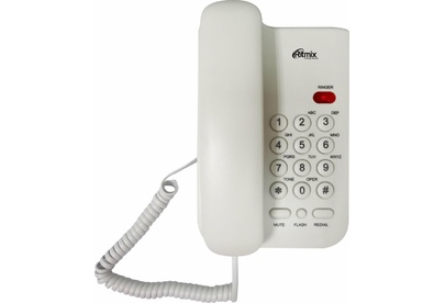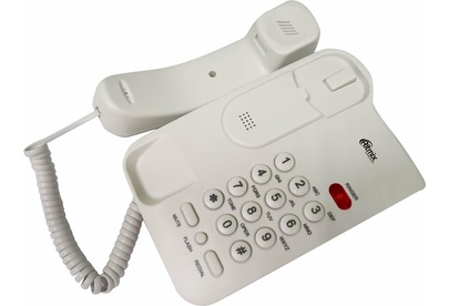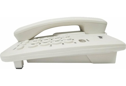 Проводной базовый телефон без дисплея. Сброс/ Повтор номера/Отключение микрофона. Переключение Импульсного /Тонового набора номера. Блокировка набора номера. Регулировка громкости звонка. Светодиодная индикация подключения к линии. Настольное и настенное крепление.