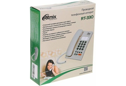 Стильный дизайн. Удобные кнопки. Импульсный и тональный набор номера. 3 однокнопочных набора номера в памяти. Мелодия на удержании звонка. Регулировка громкости входящего звонка. Пауза, сброс, повтор номера. Как настольный, так и настенный вариант размеще