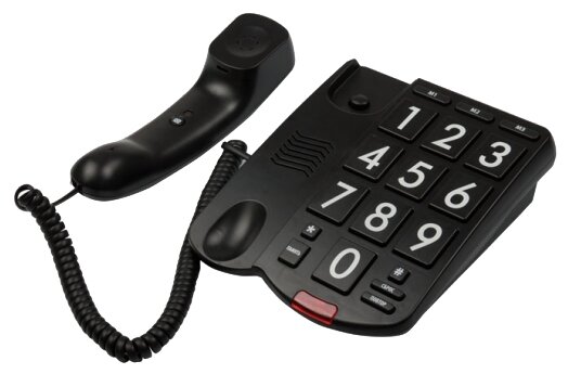 Крупные кнопки с большими четкими цифрами. Удобная трубка. Оптимальное расположение микрофона и динамика. 3 номера для быстрого однокнопочного набора в памяти. Крупный световой индикатор входящего звонка. Регулировка громкости звонка. Регулировка громкост