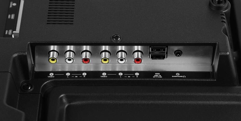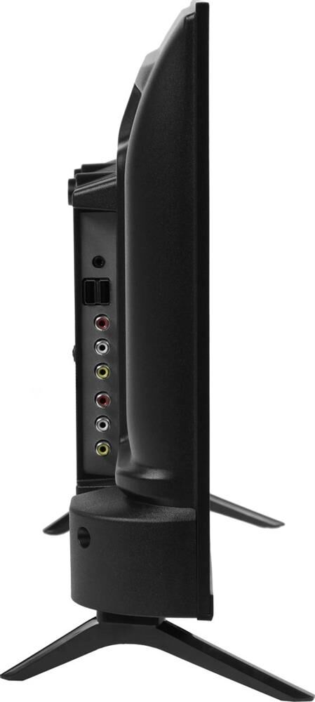 24" DLED, HD ready(1366х768), тонкие рамки, 180 cd/m2±10%, 3000:1, DVB-C/T/T2, 2 HDMI, 2 USB, звук 2x3 Вт, подставка под телевизор, пульт дистанционного управления, элементы питания, инструкция пользователя, гарантийный талон.