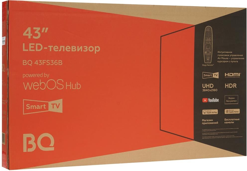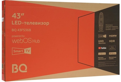 43", 109.22 см, UHD(3840*2160), тонкие рамки, 220 cd/m2 ±10%, 3000:1, DVB-C/T/T2/S2, 3 HDMI, 2 USB,Wi-Fi 6, Bluetooth, звук 2х8 Вт BOX speakers ,Smart TV ОС webOS HUB 7.0 с удобным интерфейсом, магазином приложений и стриминговыми сервисами, д/у пульт AirMouse, Wi-Fi dual band (2.4GHz+5GHz), голосовое управление, подставка под телевизор, элементы питания, инструкция пользователя, гарантийный талон.