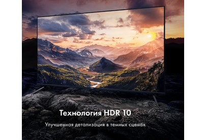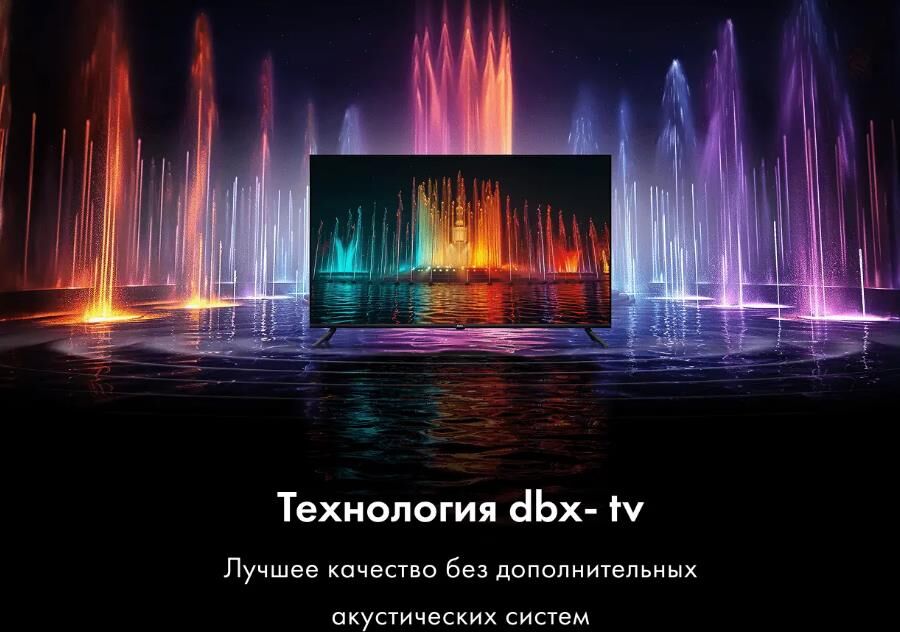 Технология экрана LED Разрешение 4K UHD 3840 x 2160 Тип подсветки Direct LED Диагональ 50" Размер экрана (см) 127 Соотношение сторон 16:9 Частота обновления (Гц) 60 Время отклика (мс) 8 Яркость (кд/м?) 280 Статическая контрастность 5000:1 Угол обзора ° 178/178 Smart TV Да Операционная система Android TV 14.0 Поддержка YouTube Да Поддержка Google Play Store Да Голосовой поиск Да Цифровое шумоподавление Да MEMC Да HDR 10 Да Upscaling 4K UHD Да Тип колонок Стерео Суммарная выходная мощность аудио (Вт) 20 Dolby Atmos Нет Эквалайзер Да DBX-TV Да Dolby Digital Decoding Да HDMI ARC Да Wi-Fi® встроенный Да Версия Wi-Fi, ГГц 5 Ethernet вход 1 Bluetooth 5.1 Энергопотребление, Вт 115 DVB-T Да DVB-T2 Да DVB-C Да DVB-S Да DVB-S2 Да Система аналогового ТВ PAL/SECAM/NTSC