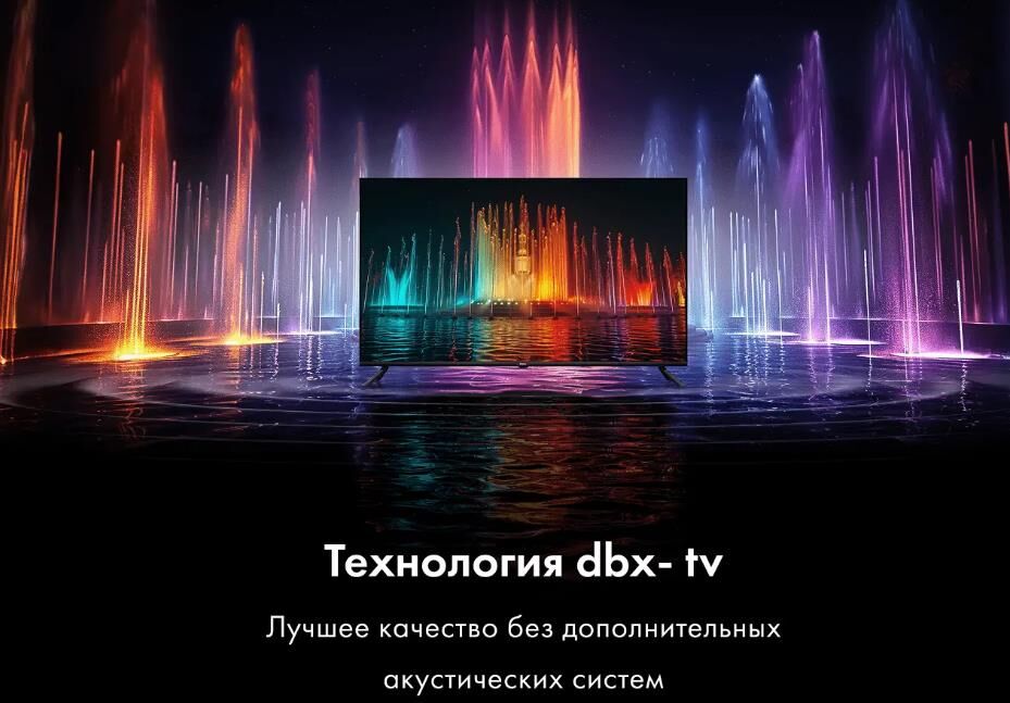Технология экрана LED Разрешение 4K UHD 3840 x 2160 Тип подсветки Direct LED Диагональ 43" Соотношение сторон 16:9 Частота обновления (Гц) 60 Время отклика (мс) 6.5 Яркость (кд/м?) 250 Статическая контрастность 5000:1 Угол обзора ° 178/178 Smart TV Да Операционная система Android TV 14.0 Поддержка YouTube Да Поддержка Google Play Store Да Голосовой поиск Да HDR-Dolby Vision Нет Цифровое шумоподавление Да MEMC Да HDR 10 Да Upscaling 4K UHD Да Тип колонок Стерео Суммарная выходная мощность аудио (Вт) 20 Dolby Atmos Нет Эквалайзер Да DBX-TV Да Объемный звук Да Dolby Digital Decoding Да HDMI ARC Да Wi-Fi® встроенный Да Версия Wi-Fi, ГГц 5 Ethernet вход 1 Bluetooth 5.1 Энергопотребление, Вт 120 DVB-T Да DVB-T2 Да DVB-C Да DVB-S Да DVB-S2 Да Система аналогового ТВ PAL/SECAM