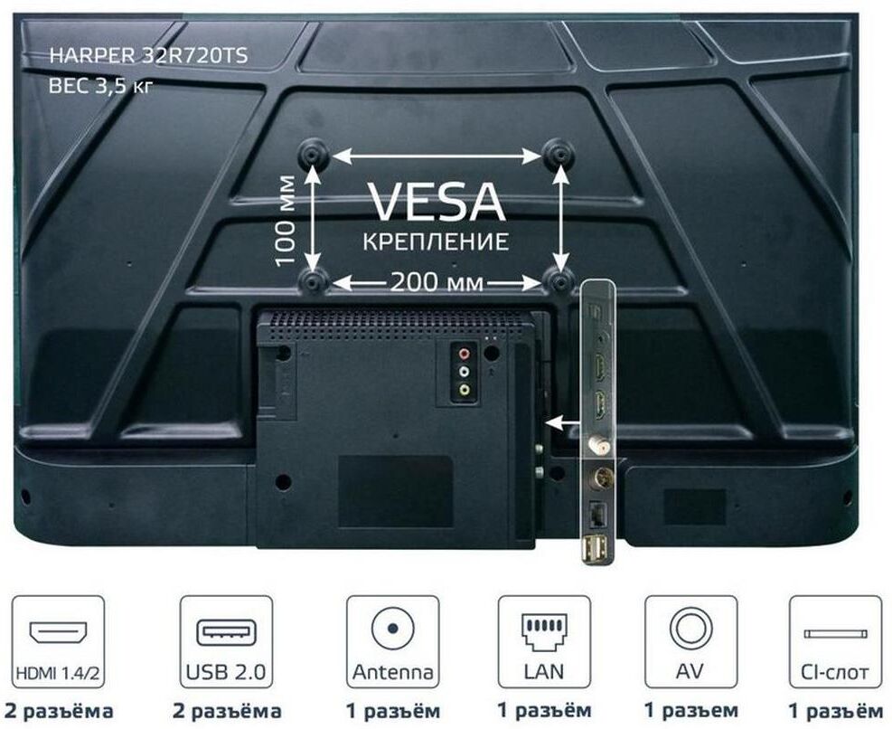 Телевизор HARPER 32R720TS-БЕЗРАМОЧНЫЙ