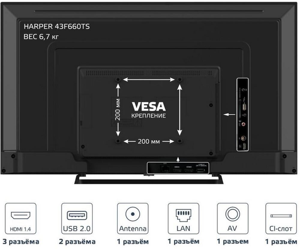 Телевизор HARPER 43F660TS-T2-FHD-SMART